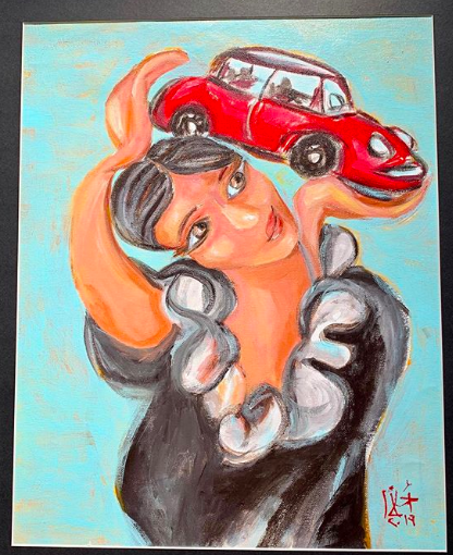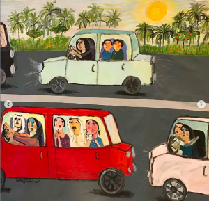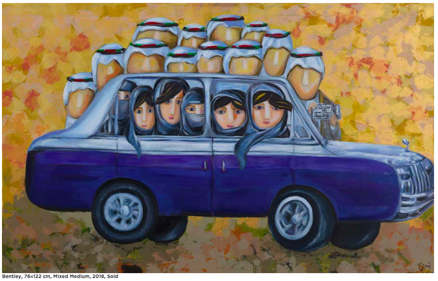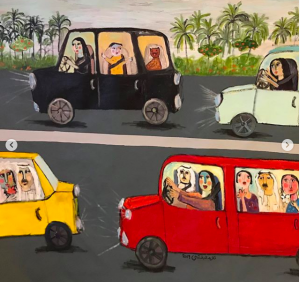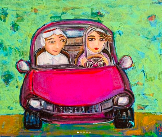 Truly that imagination led to many outstanding paintings once driving becomes a reality. Women drive a car (2018), 111, and other paintings were born through her brushes.