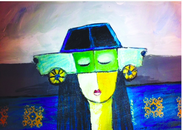 she published one of her artwork, a woman wearing a crown holding a car dearly to her heart. When she was asked about her work she said: