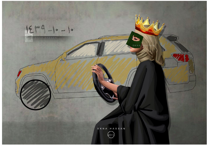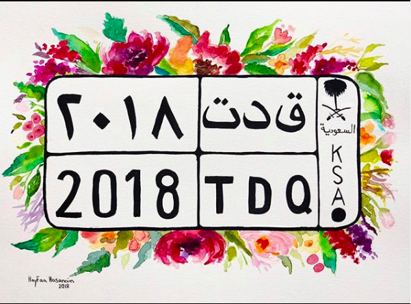 That one Arabic verb QDT ( I drove) sums it all. It was celebrated in a car plate surround by followers. In which the artist’s comment “Finally I drove the car in Saudia… 2018”