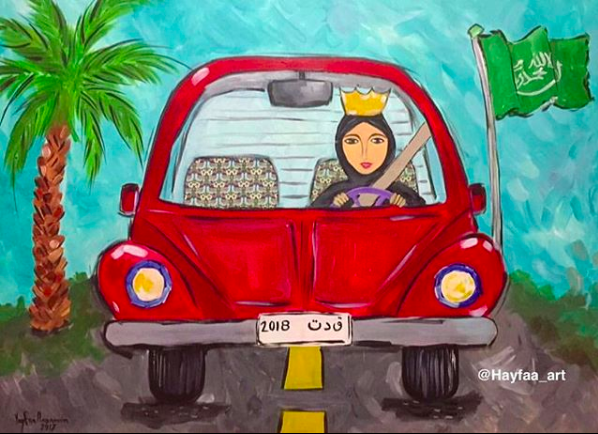 media sensation when singer Rihanna posted the painting on her Instagram account, with a message supporting Saudi women driving.