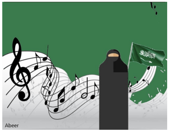 My name is Abeer from Riyadh, and I love art in all its forms. When I was young, till the age of 17, I used to live with my grandparents, who are very conservative and strictly religious. for example: “It was forbidden to listen to music, or to wear pants or a short dress, (short dresses) means any dress that does not cover the feet”