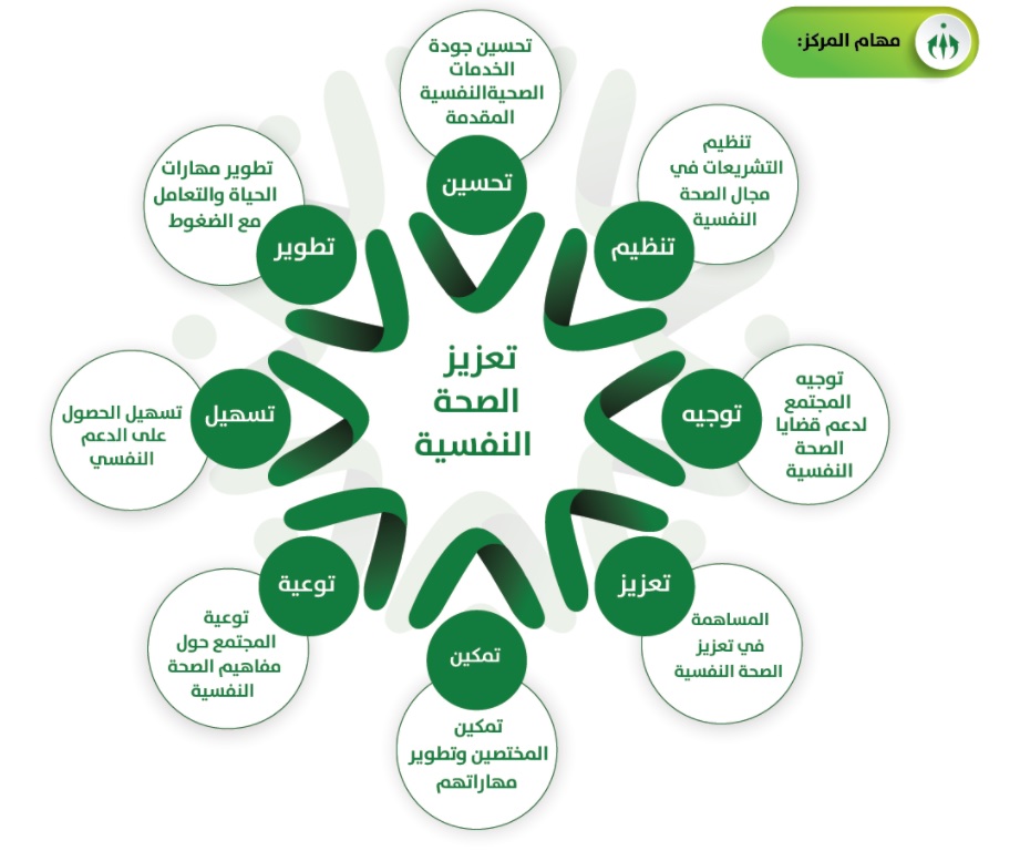 يذكر أن المركز الوطني لتعزيز الصحة النفسية يعمل على صناعة برامج وطنية تسهم في تعزيز الصحة النفسية، وتهيئة حياة أفضل لأفراد المجتمع، وتعزيز المشاركة الإيجابية، ودعم الفئات الأكثر عرضة للاضطرابات النفسية، وذلك من خلال توجيه المجتمع لدعم قضايا الصحة النفسية، وتمكين الفئات المستهدفة وتطوير مهاراتها بما يحقق المفهوم الشامل للصحة النفسية، وتقديم برامج التوعية والتثقيف الصحي في مجال الصحة النفسية، والإسهام في تحسين جودة الخدمات النفسية المقدمة، إضافة إلى تطوير برامج وقائية في مجال الصحة النفسية.