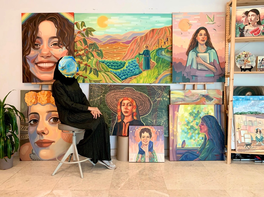 Waiting for the moment that the school ends so she can go back home, and watch her favorite film-cartoons, and pause the TV so she can draw the characters displayed there. Then when she got into high school, she had a supportive teacher and a principal that knew her hidden painting talents so they encouraged her to participate in a local competition conducted in their city.. and after refusing many times, she finally participated, and to her surprise, she won with first place.. and later on, she participated in a another competition for artists from all over Saudi Arabia, and again! she won the 4th place which was a huge deal back then.